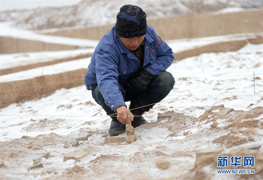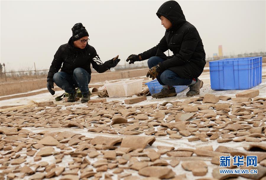考古人員在秦咸陽城胡家溝建筑遺址考古工地上清理殘瓦(1月24日攝)。近日,考古工作者首次在秦咸陽城遺址區(qū)域內(nèi)發(fā)現(xiàn)秦代大型國家府庫遺存。這是繼20世紀(jì)70至80年代發(fā)掘秦咸陽宮遺址以來,在秦咸陽大遺址保護區(qū)內(nèi)再次發(fā)現(xiàn)秦代大型官署建筑遺址。此次發(fā)現(xiàn)的遺址位于陜西省西咸新區(qū)秦漢新城窯店鎮(zhèn),地處秦都咸陽城宮區(qū)以西的胡家溝塬地。遺址建筑四面為夯土垣墻,墻體厚度約3米,寬19.5米,總長110米。發(fā)掘過程中出土了數(shù)量眾多的石質(zhì)編磬殘塊,目前已在23件殘塊上發(fā)現(xiàn)了小篆“北宮樂府”等字樣,再次證實了秦代設(shè)樂府的史實。新華社記者 李一博 攝 -
