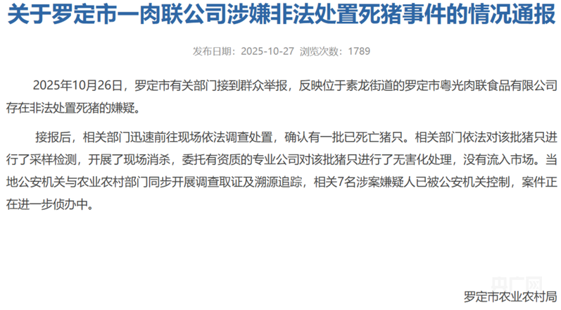 廣東羅定一企業(yè)非法處置死豬 官方通報:沒有流入市場,7名涉案嫌疑人已被控制