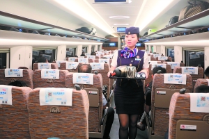 不僅如此,“復(fù)興號(hào)”列車乘坐起來(lái)也更為舒適。相比“和諧號(hào)”,“復(fù)興號(hào)”動(dòng)車組車體高度、寬度均有不同程度增加。車廂高度從3380mm增加到4080mm。車內(nèi)空間更加寬敞,尤其在二等座車廂,這種變化尤為明顯。市民李先生表示,“第一次坐復(fù)興號(hào),一上車就感到有明顯變化,車座寬了不少!坐起來(lái)更舒服了!避噹麅(nèi)的燈光也更為柔和溫馨,頂部還加裝了橢圓形頂燈。