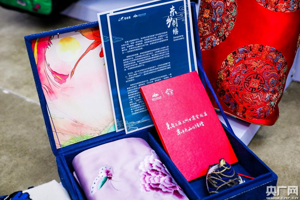 絲質(zhì)順滑的東鄉(xiāng)刺繡絲巾。(央廣網(wǎng)發(fā))