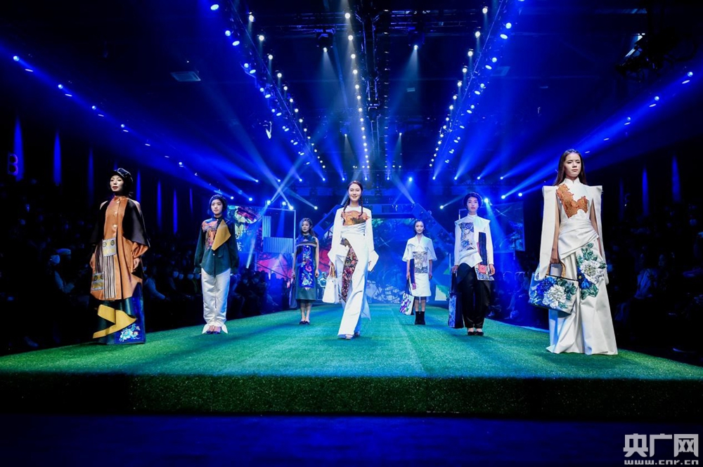 東鄉(xiāng)繡娘在中國國際時(shí)裝周T臺(tái)走秀。(央廣網(wǎng)發(fā))