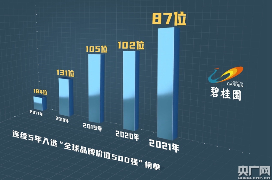 近日,英國知名品牌價值咨詢公司Brand Finance發(fā)布“2021年全球品牌價值500強(qiáng)”榜單,碧桂園集團(tuán)排名自2017年以來實(shí)現(xiàn)“五連跳”,持續(xù)攀升至第87位,首次躋身前100位。