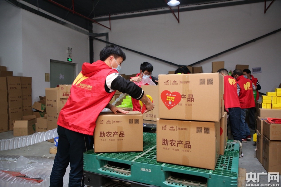 工作人員打包物資。(央廣網(wǎng)發(fā))
