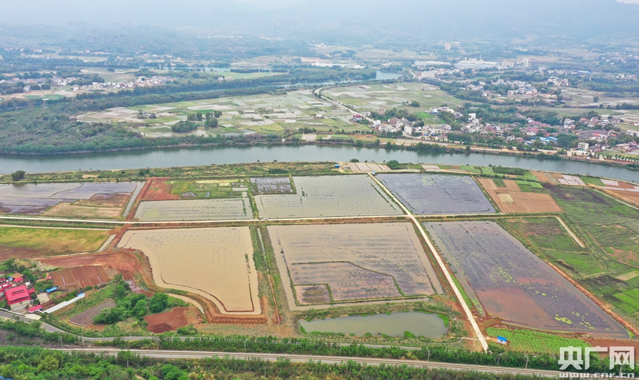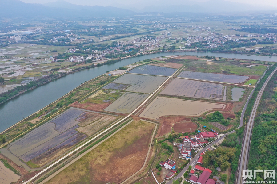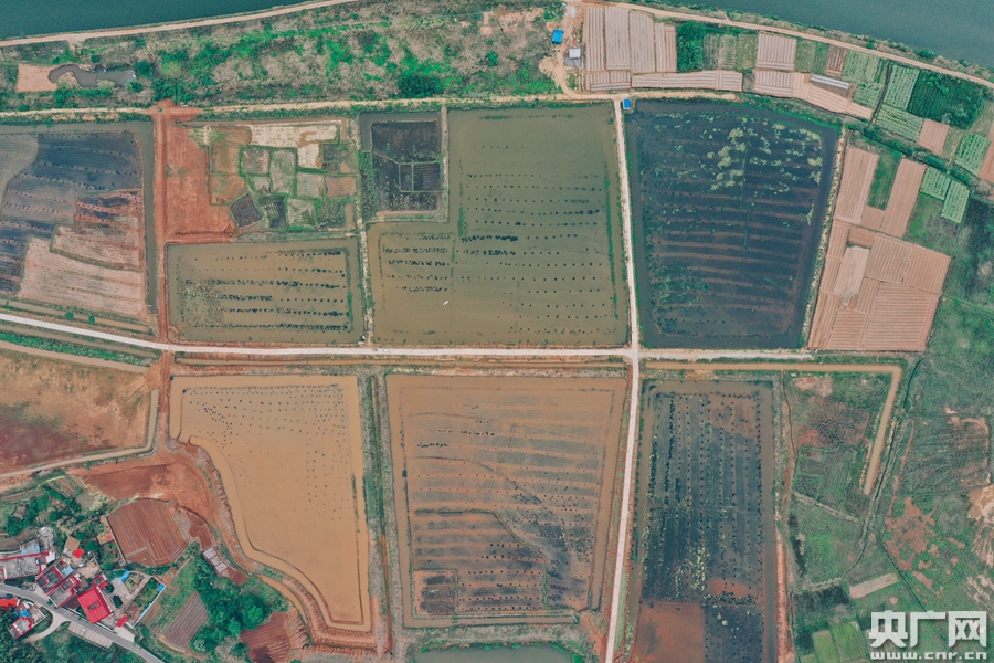 俯瞰數(shù)百畝稻蝦田。(央廣網(wǎng)記者 官文清攝)