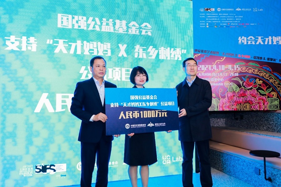 活動(dòng)現(xiàn)場(chǎng),碧桂園通過(guò)國(guó)強(qiáng)公益基金向中國(guó)婦女發(fā)展基金會(huì)捐贈(zèng)1000萬(wàn)元,用于支持甘肅省臨夏回族自治州東鄉(xiāng)族自治縣東鄉(xiāng)刺繡項(xiàng)目。