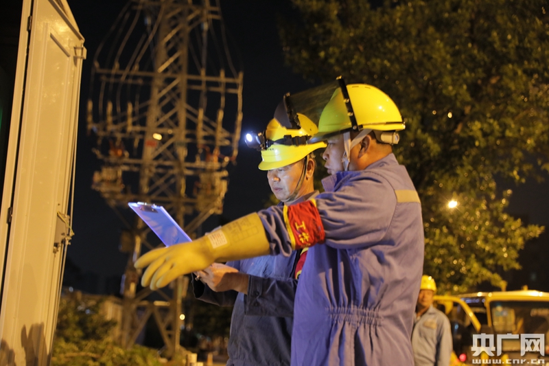 2020年11月8日,鶴山供電局對(duì)鶴山工業(yè)城A區(qū)進(jìn)行線路升級(jí)改造,有效提升線路轉(zhuǎn)供電能力和抗災(zāi)能力,也為工業(yè)園日益增長(zhǎng)的負(fù)荷需求提供保障。圖為鶴城供電所工作人員在做好復(fù)電準(zhǔn)備(央廣網(wǎng)發(fā) 許湘粵攝)