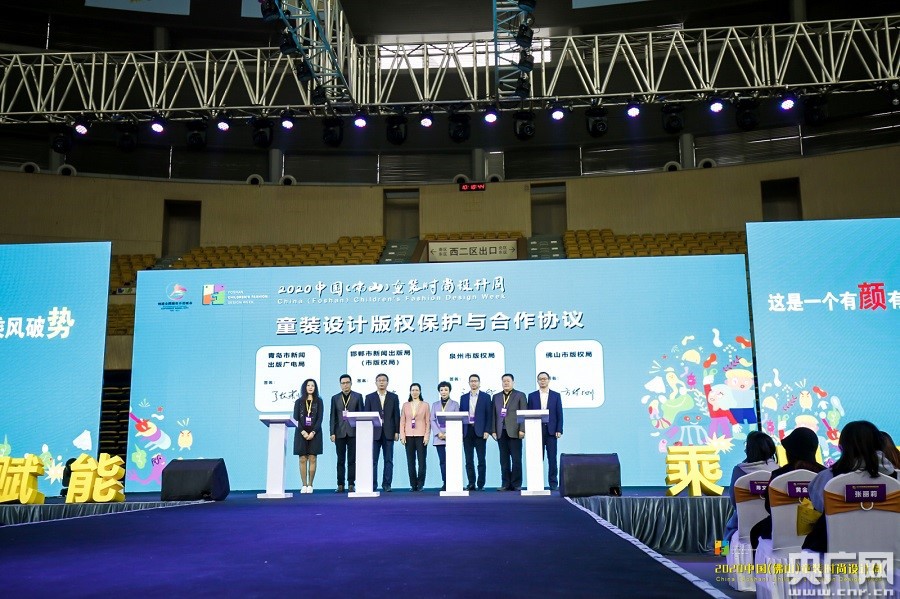 佛山、青島、邯鄲、泉州四地版權主管部門簽署童裝版權保護合作框架協(xié)議。(央廣網發(fā) 主辦方供圖)