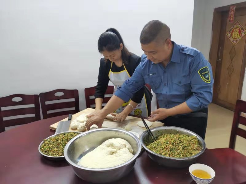 年蒸,是中國的傳統(tǒng)民俗文化,也是許多人心中的過年大事!按汗(jié)了,我們的隊(duì)員們都在忙春運(yùn),肯定沒空好好吃飯,就拉上我愛人一起給大家做個(gè)家鄉(xiāng)味道的包子和餃子嘗嘗,她的手藝可好了。”粵運(yùn)拯救第四拯救大隊(duì)副大隊(duì)長陳東一邊搟著面皮,一邊笑瞇瞇地介紹。