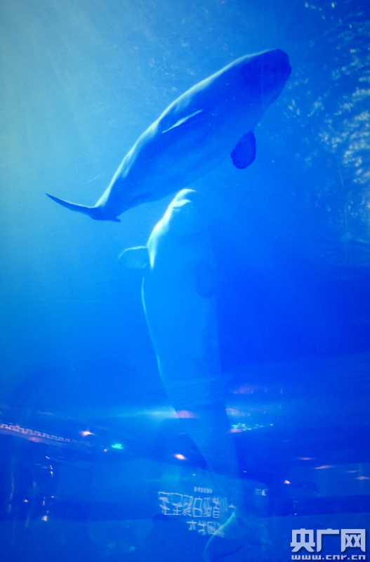 小白鯨“小五”與媽媽在玩耍。(央廣網(wǎng)發(fā) 主辦方供圖)
