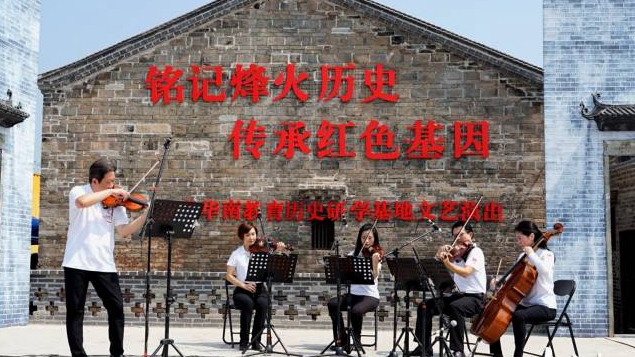 廣州交響樂團首席、副團長張毅與“飛·粵”四重奏在現(xiàn)場演繹獨奏與弦樂四重奏《第一小提琴協(xié)奏曲》片段。該首曲目由著名音樂家馬思聰1943年作于粵北。