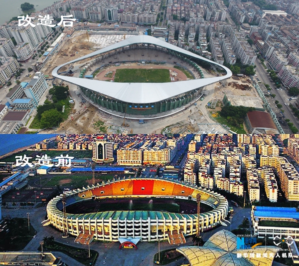 肇慶市體育中心升級改造后與改造前對比。新華網(wǎng)發(fā)