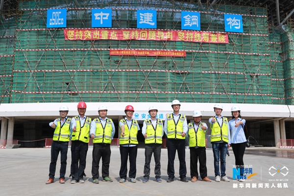 中建鋼構有限公司肇慶體育中心升級改造工程項目項目經(jīng)理薛飛飛(左5)是中建鋼構最早一批80后項目經(jīng)理。他介紹。項目升級改造工程自2016年3月開工,預計將于2018年初提前完工。體育中心升級改造后,將成為集綠色節(jié)能、智能辦公、健身、娛樂、休閑和展示于一體的大型多功能綜合性活動場所。新華網(wǎng) 伍嘉煒攝