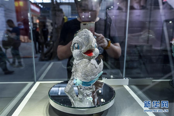5月15日,觀眾在文博會現(xiàn)場拍攝鉆石擺件“鵬鵬”。當(dāng)日,第十三屆中國(深圳)國際文化產(chǎn)業(yè)博覽交易會落下帷幕。據(jù)大會統(tǒng)計,本屆文博會成交2240.848億元,同比增長10.28%。其中,合同成交2064.348億元,零售及拍賣成交176.500億元。新華社記者 毛思倩 攝
