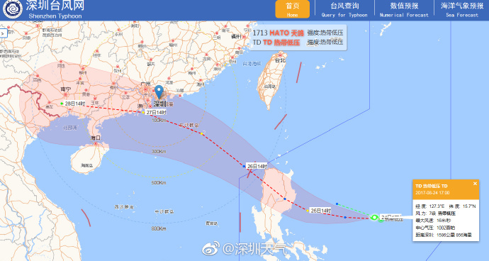 據(jù)深圳天氣微博消息,臺風“天鴿”剛走,又有一個新的熱帶低壓在菲律賓以東洋面生成,該熱帶低壓24日17時距離深圳1586公里。