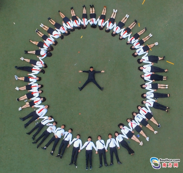 集體大合照結(jié)束后,學生們分散到校園各個角落拍照。在經(jīng)世廣場,校方提供了巨型“學生證”等展板供學生合影。在足球場,一些學生平躺在操場擺出“畢業(yè)了”的造型,換一個視角定格即將逝去的大學青春時光。