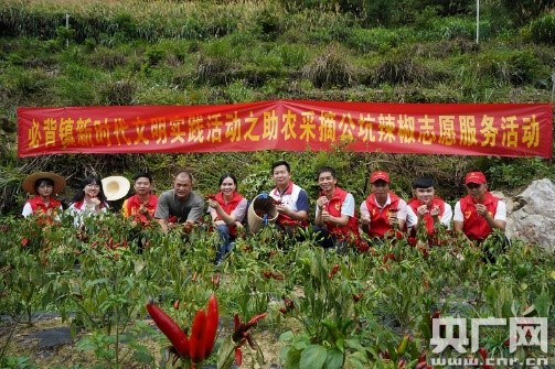 志愿者走進(jìn)大山,幫助農(nóng)戶采摘辣椒(央廣網(wǎng)發(fā) 鄧仕華 攝)