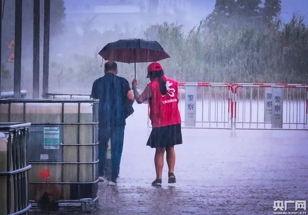 央廣網(wǎng)中山9月5日消息(記者張勝強(qiáng) 通訊員曾毅峰)暴雨中,一位梳著馬尾辮的志愿者姑娘撐傘扶送一位老人。雨傘微微向老人身上傾斜,姑娘的衣服、鞋子、帽子早已被雨水打濕。