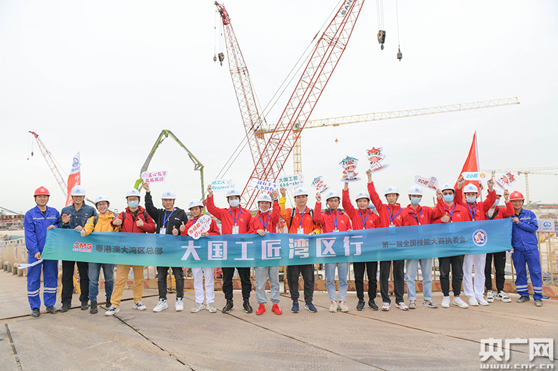這是由中央廣播電視總臺(tái)粵港澳大灣區(qū)總部和第一屆全國(guó)技能大賽執(zhí)委會(huì)共同主辦的“大國(guó)工匠灣區(qū)行”活動(dòng)之“大國(guó)工匠走進(jìn)超級(jí)工程”的其中一個(gè)場(chǎng)景。在為期三天的活動(dòng)中,來自電工、混凝土建筑、焊接、機(jī)電一體化等比賽項(xiàng)目的多位“技能國(guó)手”用腳步丈量“超級(jí)工程”,感受大灣區(qū)發(fā)展速度。