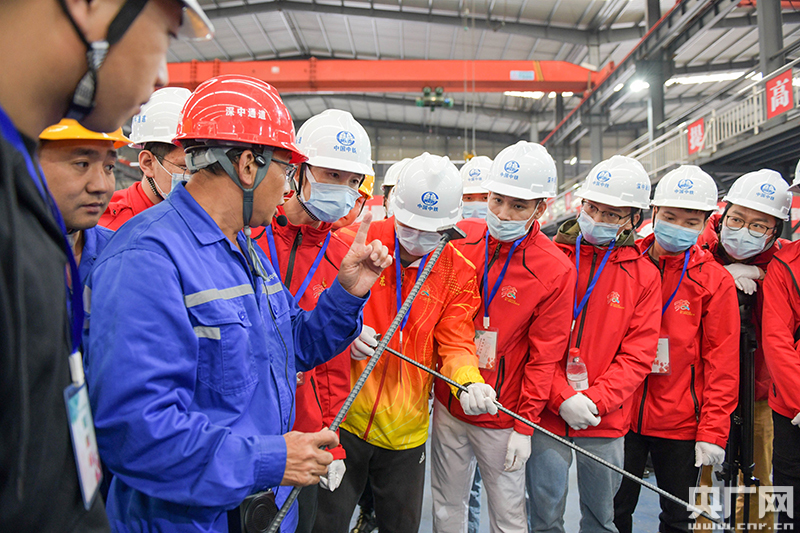 與此同時(shí),他們還與“超級(jí)工程”的一線工程師、產(chǎn)業(yè)工人近距離切磋交流,拼匠心,找差距。