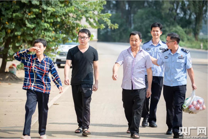 佛山民警陪蒙志勇踏上回家路。(央廣網(wǎng)發(fā) 佛山公安供圖)