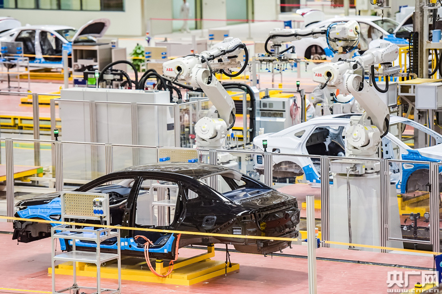 廣汽埃安智能生態(tài)工廠已實(shí)現(xiàn)全球首個大規(guī)模的定制化生產(chǎn)(央廣網(wǎng)發(fā))
