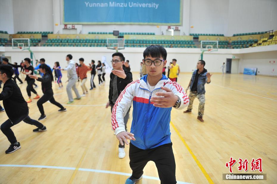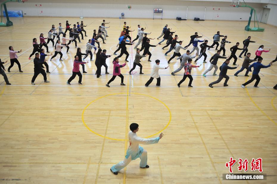 3月7日,昆明,老師帶領(lǐng)學(xué)員練習(xí)太極拳。當(dāng)日,太極公益課在云南民族大學(xué)開班,由該校國(guó)際太極學(xué)院的專業(yè)教師免費(fèi)授課。校方表示,舉辦太極拳公益課活動(dòng),旨在讓更多人了解中國(guó)的太極文化,建立積極向上的健康人生觀。 中新社記者 劉冉陽(yáng) 攝 -