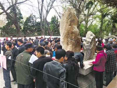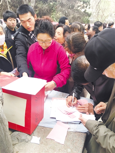 “左側(cè)排隊(duì)的是查號(hào)的,他們已經(jīng)通過(guò)卡片信息物色好了心上人,只要登記個(gè)人信息就可以從工作人員處獲得對(duì)方的聯(lián)系方式!标惻拷榻B稱(chēng),右側(cè)排隊(duì)的則是為自個(gè)兒或者兒女登記信息的市民。