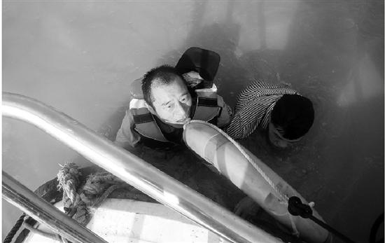 “我們把快艇的不銹鋼舷梯放下來,兩名協(xié)輔警在快艇上抓住落水男子的手,我在水中把他往上托,終于把他拉到了快艇上。”金衛(wèi)良說,當(dāng)快艇載著落水男子來到岸邊的碼頭時,已經(jīng)3點10分左右了。