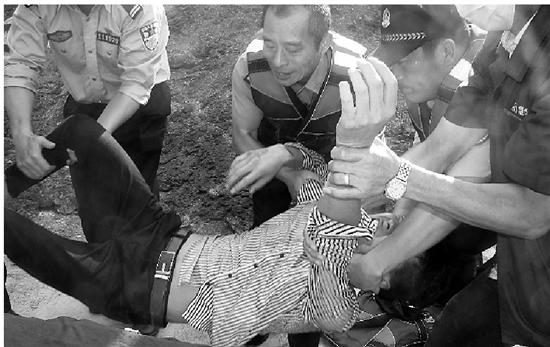 民警金衛(wèi)良在江中緊緊抓住跳江者。
