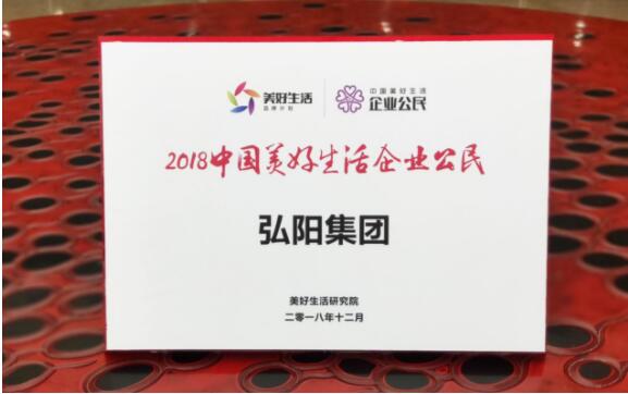 2018年12月12日,“致敬改革開放·致遠(yuǎn)美好生活——2018中國(guó)地產(chǎn)新時(shí)代盛典”在北京舉行,弘陽集團(tuán)榮獲“2018中國(guó)美好生活企業(yè)公民”稱號(hào)。
