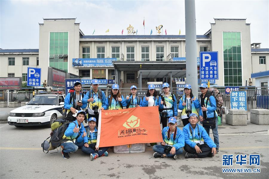 全家福第16次拍攝團十二名隊員在凱里火車站合影(4月29日攝)。