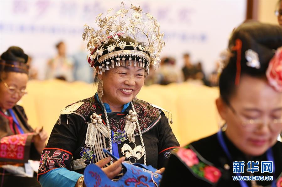 當(dāng)日,第五屆貴州省婦女特色手工技能暨創(chuàng)新產(chǎn)品大賽在貴陽市舉行。來自貴州省各地的繡娘和染娘分別就民族刺繡、民族蠟染、創(chuàng)新產(chǎn)品設(shè)計等項目進(jìn)行比拼,她們在現(xiàn)場飛針走線、巧手繪圖,展示貴州婦女特色手工之美。