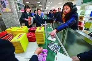 昨天,在中關(guān)村一家郵局,集郵愛好者在購(gòu)買馬年生肖郵票。首席攝影記者 蔡代征/攝