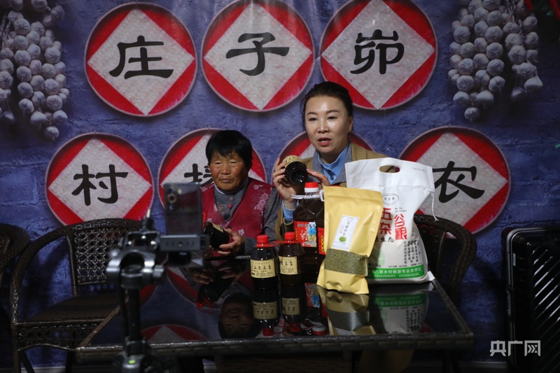 楊清艷帶領(lǐng)三奶奶直播賣貨(央廣網(wǎng)發(fā) 喬潔 攝)