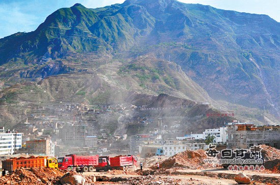 中廣網(wǎng)蘭州6月17日消息 甘肅省水利水電工程局工程隊在舟曲縣三眼峪排洪渠現(xiàn)場施工。目前,舟曲縣城泥石流綜合治理工程進展順利。記者 洪文泉 攝