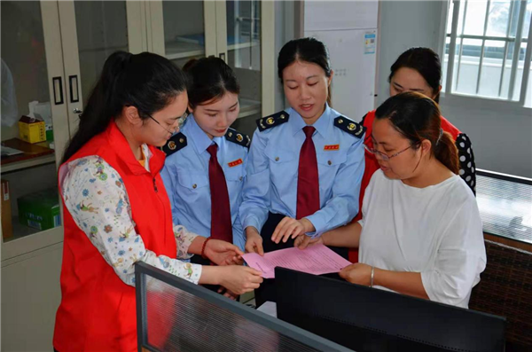 浦北縣稅務(wù)局志愿者服務(wù)隊現(xiàn)場解答納稅人的涉稅問題(央廣網(wǎng)發(fā) 馬強攝)