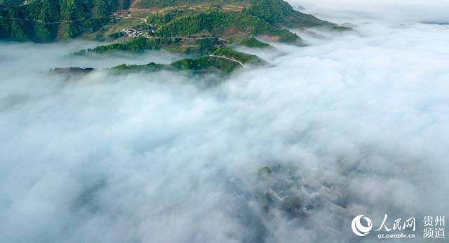 航拍貴州山村:霧繞仡鄉(xiāng)美如畫(高清組圖),4月17日,從空中俯瞰貴州省務川仡佬族苗族自治縣紅絲鄉(xiāng)先進村,晨曦透過云霧,光輝灑滿村莊與青山,形成一幅夢幻山村圖,宛若仙境。(田東)