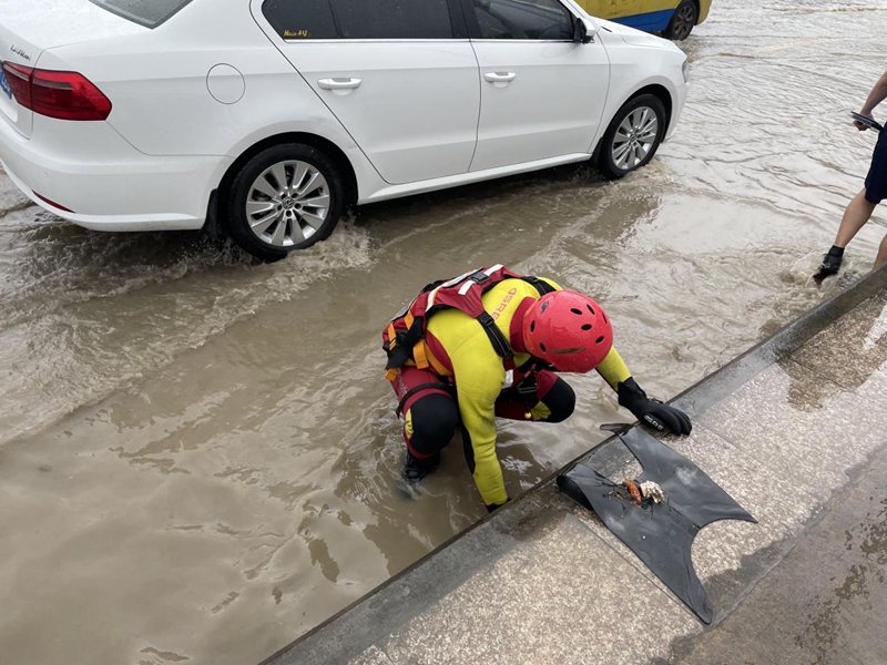 強(qiáng)降雨產(chǎn)生的垃圾雜物將思南縣一橋排水口堵塞,導(dǎo)致積水過多,嚴(yán)重影響交通。消防指戰(zhàn)員快速搜尋排水口,清理堵塞垃圾,經(jīng)過45分鐘的救援,所有排水口疏通完畢,成功排除橋面積水;在思南烏江大道,由于積水嚴(yán)重,消防指戰(zhàn)員到場(chǎng)后打開下水道井蓋,利用城市排水系統(tǒng)進(jìn)行排水,同時(shí)利用架設(shè)手抬機(jī)動(dòng)泵,進(jìn)行城市排澇。目前,排澇工作仍在進(jìn)行中。