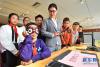 10月15日,在河北省廊坊市安次區(qū)圖書館視障閱讀區(qū),一名小學(xué)生在工作人員的幫助下體驗一鍵式盲人閱讀系統(tǒng)。新華社發(fā)(劉學(xué)民 攝) 當(dāng)日是國際盲人節(jié),河北省廊坊市安次區(qū)開展“體驗盲人閱讀 關(guān)愛盲人生活”活動,組織當(dāng)?shù)貙W(xué)生來到安次區(qū)圖書館視障閱讀區(qū)實地體驗,倡導(dǎo)全社會關(guān)愛盲人。 -