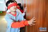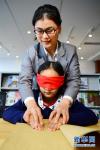10月15日,在河北省廊坊市安次區(qū)圖書館視障閱讀區(qū),小學(xué)生們將雙眼蒙住體驗在黑暗中行走。 新華社發(fā)(劉學(xué)民 攝)