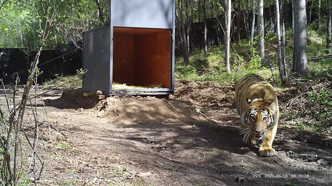 “我們通過‘完達(dá)山1號’花紋及DNA的溯源結(jié)果,找到它最有可能的來源地,并以100平方公里范圍進行選擇。之后,根據(jù)之前對待選范圍的資源調(diào)查及棲息地評估,尋找有良好的森林生態(tài)環(huán)境、充足的獵物資源,最重要的是較少的人類活動的地方,上面這些因素綜合考慮,最終確定了‘完達(dá)山1號’新的棲息地。”趙越說。