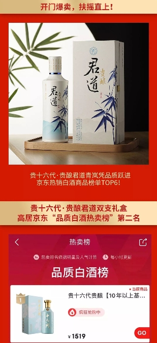 除貴十六代·天青外,貴十六代系列產(chǎn)品在京東全球好物節(jié)活動期間,均有不俗表現(xiàn)。