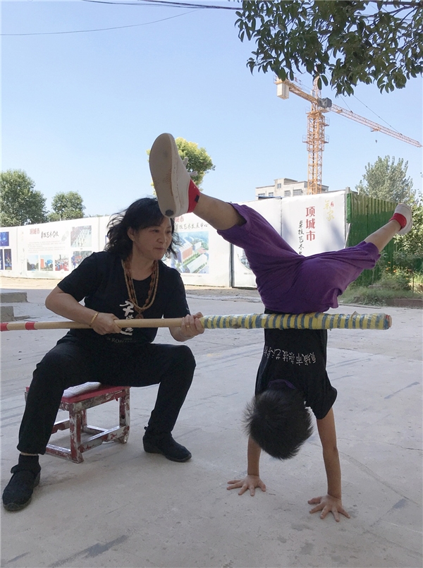 除了課間在練功廳里的訓(xùn)練,還有一些孩子會運用課下的時間反復(fù)練習(xí)雜技動作,老師們也會非常樂意去幫忙。秋高氣爽的周末,一名老師拿著一根練功棒,來幫助一個翻跟頭的孩子規(guī)范身體動作。雜技學(xué)校的生活,充滿了樂與苦,每一個孩子,都會在這里找到內(nèi)心深處的渴望與熱愛。