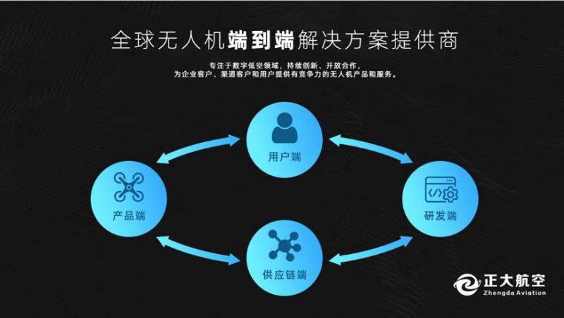 目前,正大航空是全球無(wú)人機(jī)端到端解決方案提供商。專(zhuān)注于數(shù)字低空領(lǐng)域、持續(xù)創(chuàng)新、開(kāi)放合作,為企業(yè)客戶(hù)、渠道客戶(hù)和用戶(hù)提供具有競(jìng)爭(zhēng)力的無(wú)人機(jī)產(chǎn)品和服務(wù)。