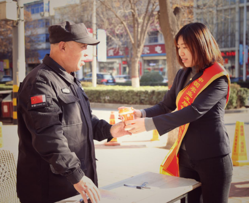3月6日,農(nóng)發(fā)行保定市滿城區(qū)支行的青年員工走上街頭,為烈陽和寒風(fēng)中默默工作的清潔工人、奔波于大街小巷的快遞小哥和駐守在小區(qū)門外的保安人員,這些常年工作在室外的的勞動(dòng)者們送去了一杯熱乎乎的奶茶和暖暖的愛心,奏響了一曲“奉獻(xiàn)、有愛、互助、進(jìn)步”的雷鋒精神贊歌。