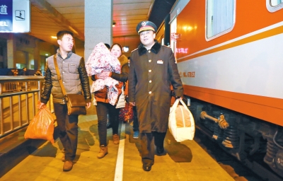 提起站臺上的丈夫,她彈了彈身上的灰,跟記者打開了話匣子。“他就是那樣,站上旅客哪個有困難,他都可積極,估計幫旅客拎上車的包也有上百個了吧!彼α诵φf,春運比較忙,我們兒子的午飯都難得給做上一頓,“剛剛給孩子打電話,讓他自己買點午飯吃,我跟他爸中午都回不去了!
