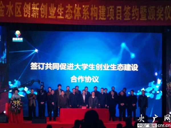 央廣網(wǎng)河南分網(wǎng)12月24日消息 (本網(wǎng)特別報道組)12月22日上午,金水區(qū)創(chuàng)新創(chuàng)業(yè)生態(tài)體系構(gòu)建項目簽約暨頒獎儀式在儉學(xué)街金水區(qū)大學(xué)生創(chuàng)業(yè)園大禮堂隆重舉行,這是繼2015年金水區(qū)舉行的第三次創(chuàng)新創(chuàng)業(yè)大賽。