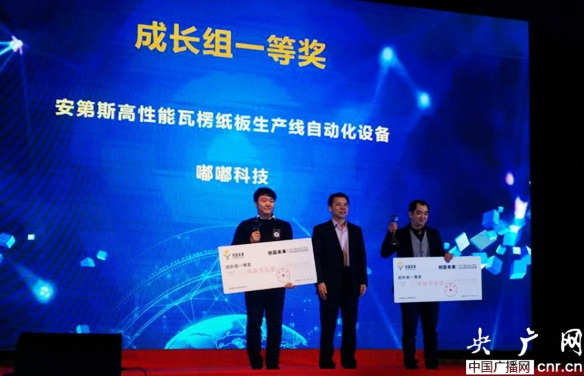 金水區(qū)委常委、常務(wù)副區(qū)長楊潔代表大賽組委會宣布大賽各獎項和315萬獎金的歸屬,最終安第斯高性能瓦楞紙板生產(chǎn)線自動化設(shè)備、嘟嘟科技斬獲成長組的一等獎,摘取50萬元的大獎。