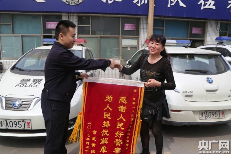 央廣網(wǎng)河南分網(wǎng)4月24日消息(本網(wǎng)特別報(bào)道組)?“我都沒想到還能找到肇事車,真是太感謝了!”4月24日上午11時(shí)許,在鄭州交警一大隊(duì)院內(nèi),市民黃女士把一面繡有“感謝人民好警察,為人民排憂解難”的錦旗遞到事故中隊(duì)民警趙浙南手里,并不住地說(shuō)著謝謝。