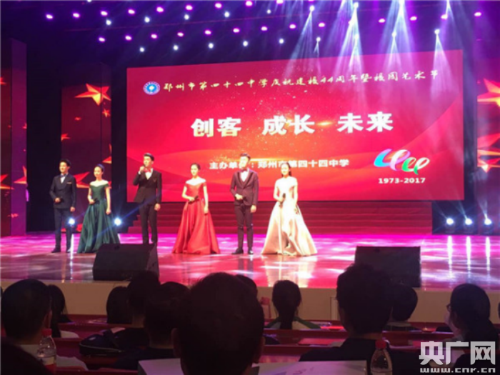 央廣網(wǎng)河南分網(wǎng)5月5日消息 (本網(wǎng)特別報(bào)道組)“四十四年潤物情,驀然回望滿芳華。”今天下午,鄭州市第四十四中學(xué)在省人民大會(huì)堂隆重舉行以“創(chuàng)客·成長·未來”為主題的慶祝建校44周年暨第五屆校園文化藝術(shù)節(jié)活動(dòng),家長、離退休老教師、歷屆校友、友鄰單位嘉賓和在校師生近3000人齊聚一堂。